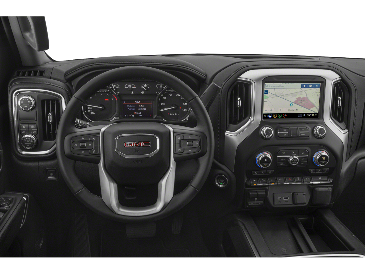 This 2019 Onyx Black GMC Sierra 1500 SLT 4WD is well equipped and includes these features and benefits: Driver Alert Package I (Lane Change Alert w/Side Blind Zone Alert, Perimeter Lighting, Rear Cross Traffic Alert, and Ultrasonic Front & Rear Park Assist), Driver Alert Package II (Following Distance Indicator, Forward Collision Alert, Front Pedestrian Braking, IntelliBeam Automatic High Beam On/Off, Lane Keep Assist w/Lane Departure Warning, Low Speed Forward Automatic Braking, and Safety Alert Seat), Preferred Equipment Group 4SA (12-Volt Rear Auxiliary Power Outlet, 120-Volt Bed Mounted Power Outlet, 120-Volt Instrument Panel Power Outlet, 170 Amp Alternator, Auxiliary External Transmission Oil Cooler, Chrome Grille, Color-Keyed Carpeting Floor Covering, Compass, Deep-Tinted Glass, Electric Rear-Window Defogger, Electrical Lock Control Steering Column, Front Frame-Mounted Black Recovery Hooks, GMC 4G LTE, GMC Connected Access, HD Radio, Heated Driver & Front Passenger Seating, Heavy-Duty Rear Locking Differential, Hitch Guidance, Hitch Guidance w/Hitch View, In-Vehicle Trailering App, Integrated Trailer Brake Controller, Keyless Open & Start, LED Cargo Area Lighting, Manual Tilt-Wheel & Telescoping Steering Column, OnStar & GMC Connected Services Capable, Power Door Locks, Power Front Passenger Windows w/Express Up/Down, Power Front Windows w/Driver Express Up/Down, Power Rear Windows w/Express Down, Rear Dual USB Charging-Only Ports, Rear Wheelhouse Liners, Remote Vehicle Starter System, Steering Wheel Audio Controls, and Theft Deterrent System (Unauthorized Entry)), SLT Convenience Package (2 USB Ports, 2 USB Ports (1st Row), Floor Mounted Console, Front Bucket Seats, Heated 2nd Row Outboard Seats, Power Sliding Rear Window w/Rear Defogger, Universal Home Remote, and Ventilated Driver & Front Passenger Seats), SLT Preferred Package (Premium Bose 7-Speaker Sound System, Radio: Premium GMC Infotainment Sys w/Navigation, SiriusXM Radio, and Wireless Charging), SLT Premium Plus Package (Chrome Assist Steps, Spray-On Pickup Bed Liner w/GMC Logo, and Trailer Tire Pressure Monitor System), Trailer Camera Package, Trailering Package, X31 Off-Road Package (Dual Exhaust w/Premium Tips, High-Capacity Air Filter, Hill Descent Control, Off-Road Suspension, and X31 Hard Badge), 8-Speed Automatic, 4WD, Dark Walnut/Slate Leather, 10-Way Power Driver Seat Adjuster w/Lumbar, 10-Way Power Passenger Seat Adjuster w/Lumbar, 20" x 9" Polished Aluminum Wheels, 3.23 Rear Axle Ratio, 4-Wheel Disc Brakes, 6 Speakers, 6-Speaker Audio System Feature, ABS brakes, Air Conditioning, All-Weather Floor Liner (LPO), Alloy wheels, AM/FM radio: SiriusXM, Apple CarPlay/Android Auto, Auto-dimming door mirrors, Auto-dimming Rear-View mirror, Automatic temperature control, Brake assist, Bumpers: chrome, Delay-off headlights, Driver door bin, Driver Memory, Driver vanity mirror, Dual front impact airbags, Dual front side impact airbags, Electronic Stability Control, Front 40/20/40 Split-Bench Seat, Front anti-roll bar, Front Center Armrest w/Storage, Front dual zone A/C, Front fog lights, Front License Plate Kit, Front reading lights, Front wheel independent suspension, Fully automatic headlights, Heated door mirrors, Heated front seats, Heated steering wheel, Heavy Duty Suspension, Illuminated entry, Low tire pressure warning, Memory seat, Occupant sensing airbag, Outside temperature display, Overhead airbag, Overhead console, Panic alarm, Passenger door bin, Passenger vanity mirror, Perforated Leather-Appointed Seat Trim, Power door mirrors, Power driver seat, Power passenger seat, Power steering, Power windows, Premium audio system: GMC Infotainment System, Radio data system, Radio: Premium GMC Infotainment Sys w/Multi-Touch, Rear reading lights, Rear seat center armrest, Rear step bumper, Rear window defroster, Remote keyless entry, Security system, Speed control, Speed-sensing steering, Split folding rear seat, Steering wheel mounted audio controls, Ta