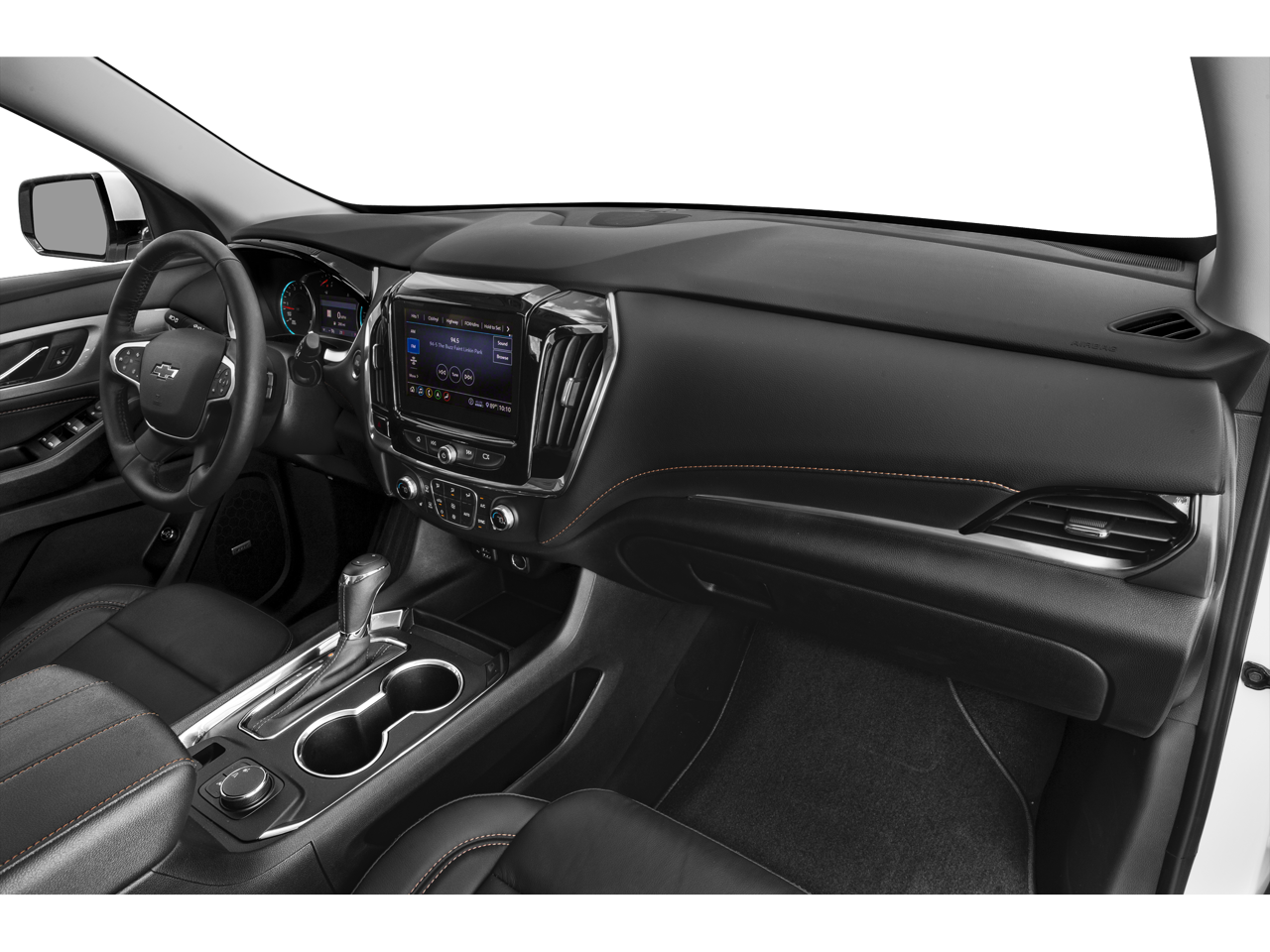 CARFAX One-Owner. This 2021 Cajun Red Tintcoat Chevrolet Traverse RS FWD is well equipped and includes these features and benefits: Front License Plate Bracket Mounting Package, Preferred Equipment Group 2LT (Gloss Black Emblem Kit (LPO)), 10 Speakers, 3.49 Axle Ratio, 3rd row seats: split-bench, 4-Wheel Disc Brakes, 7-Passenger Seating (2-2-3 Seating Configuration), ABS brakes, Air Conditioning, Alloy wheels, AM/FM radio: SiriusXM with 360L, Apple CarPlay/Android Auto, Auto High-beam Headlights, Auto-dimming Rear-View mirror, Automatic temperature control, Bose Premium 10-Speaker Audio System Feature, Brake assist, Bumpers: body-color, Compass, Delay-off headlights, Driver door bin, Driver vanity mirror, Dual front impact airbags, Dual front side impact airbags, Electronic Stability Control, Emergency communication system: OnStar and Chevrolet connected services capable, Four wheel independent suspension, Front anti-roll bar, Front Bucket Seats, Front Center Armrest, Front dual zone A/C, Front fog lights, Front reading lights, Fully automatic headlights, Garage door transmitter, Heated door mirrors, Heated front seats, Heated steering wheel, High-Intensity Discharge Headlights, Illuminated entry, Leather steering wheel, Leather-Appointed Seat Trim, Low tire pressure warning, Navigation System, Occupant sensing airbag, Outside temperature display, Overhead airbag, Overhead console, Panic alarm, Passenger door bin, Passenger vanity mirror, Power door mirrors, Power driver seat, Power Liftgate, Power passenger seat, Power steering, Power windows, Premium audio system: Chevrolet MyLink, Radio data system, Radio: Chevrolet Infotainment 3 Premium System, Rear air conditioning, Rear anti-roll bar, Rear reading lights, Rear window defroster, Rear window wiper, Remote keyless entry, Roof rack: rails only, Security system, SiriusXM w/360L, Speed control, Speed-sensing steering, Spoiler, Steering wheel mounted audio controls, Tachometer, Telescoping steering wheel, Tilt steering wheel, Traction control, Trip computer, Turn signal indicator mirrors, Variably intermittent wipers, Voltmeter, and Wheels: 20 Dark Android Painted Aluminum.